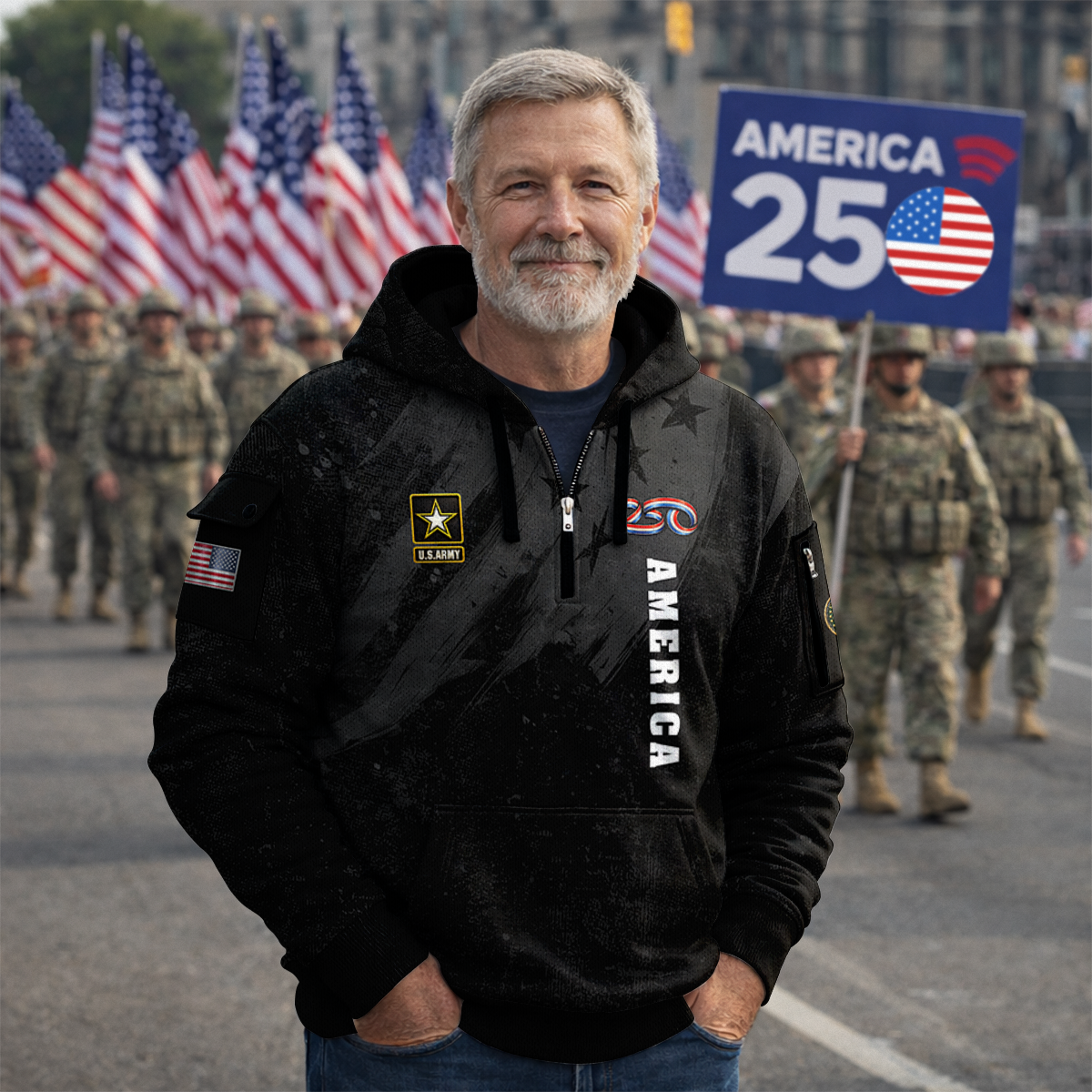 America 250 – US Army All-Over Quarter Zip Hoodie