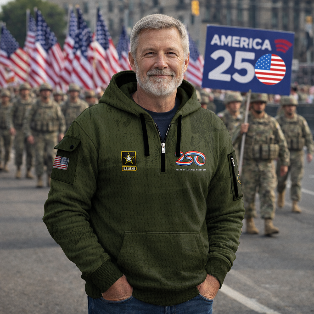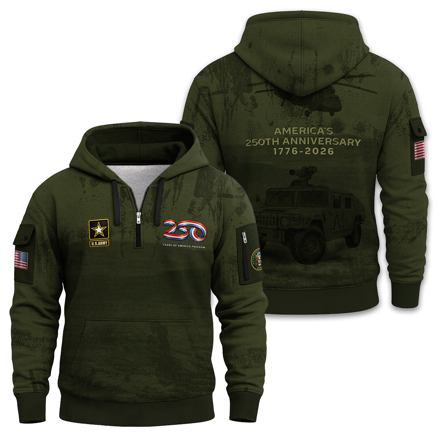 America 250 – US Army All-Over Quarter Zip Hoodie