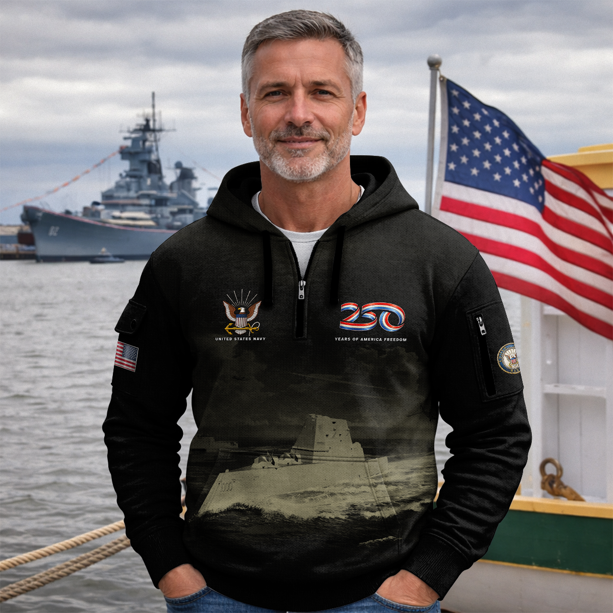 America 250 – US Navy All-Over Quarter Zip Hoodie