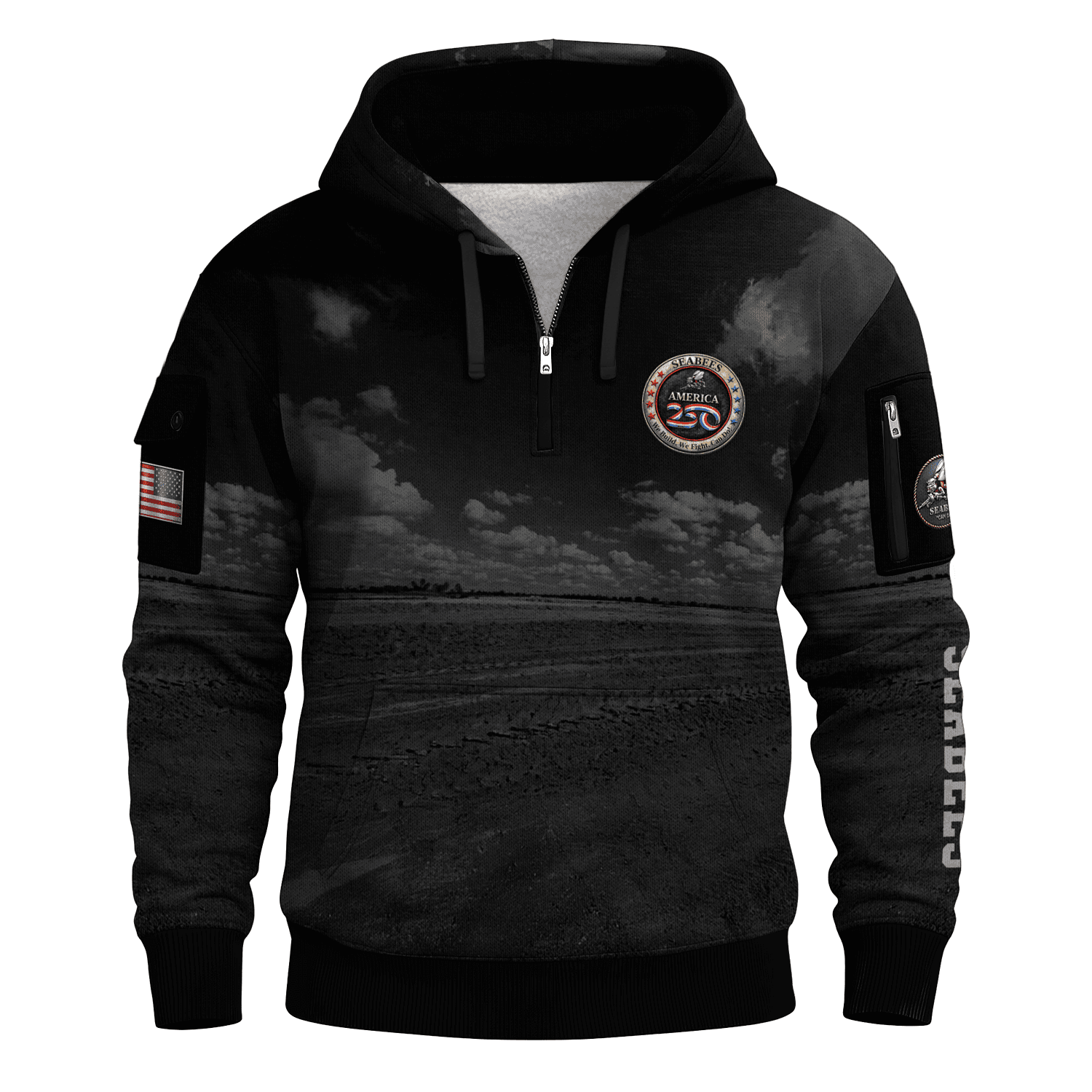 America 250 – US Navy SeaBees All-Over Quarter Zip Hoodie