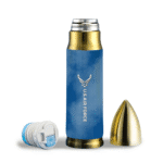 • Design: Unique bullet shape with rounded base for a striking look. Leak-proof lid with airtight stopper; cap doubles as a drinking cup.