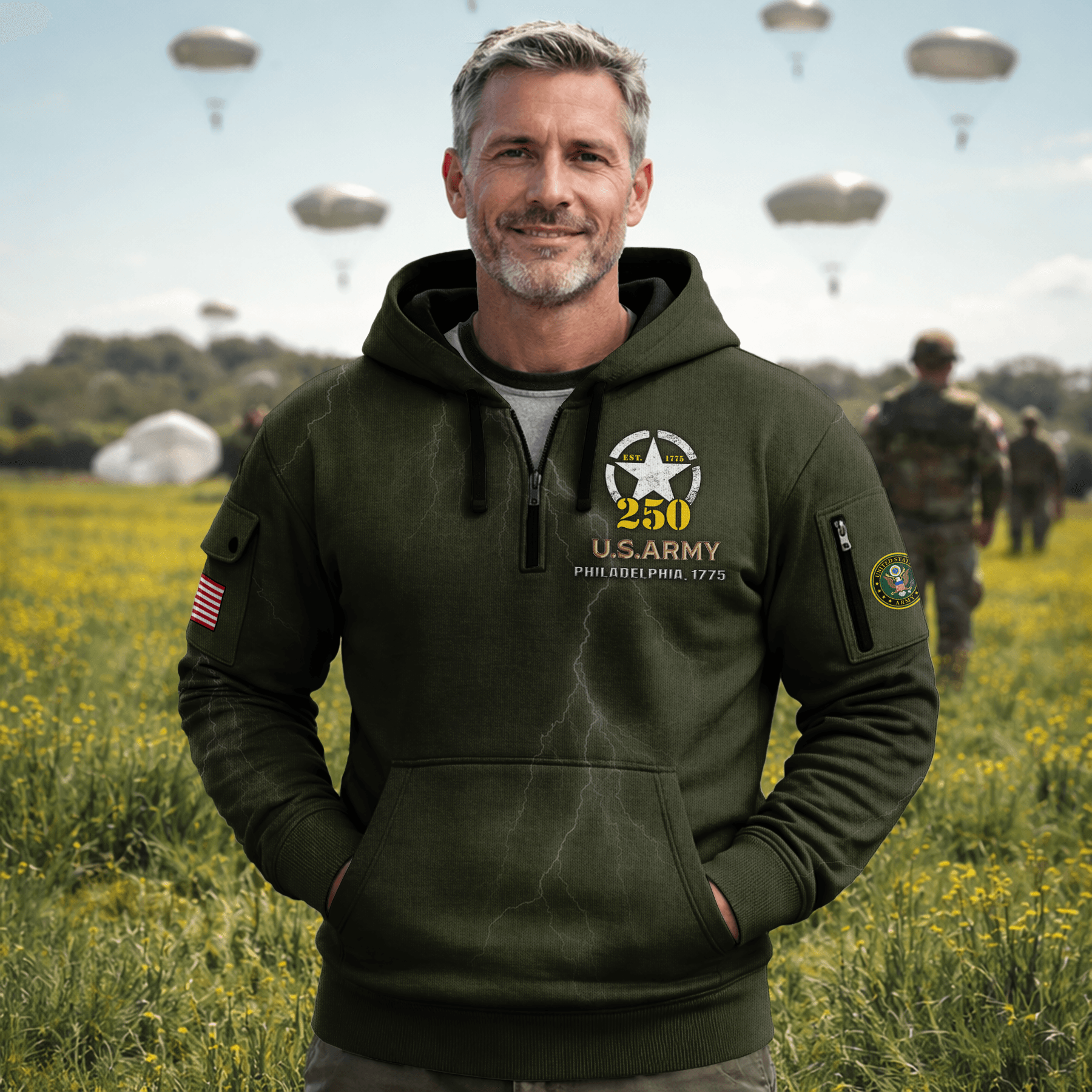 US ARMY 250th Years Of Service All-over Quater Zip Hoodie