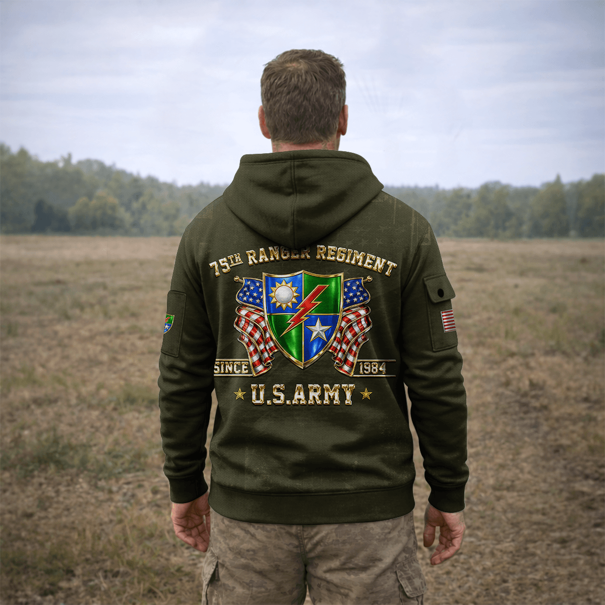 US Army 75th Ranger Regiment All-over Quarter Zip Hoodie