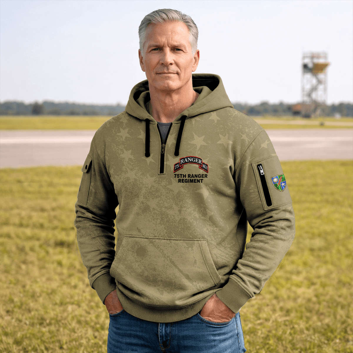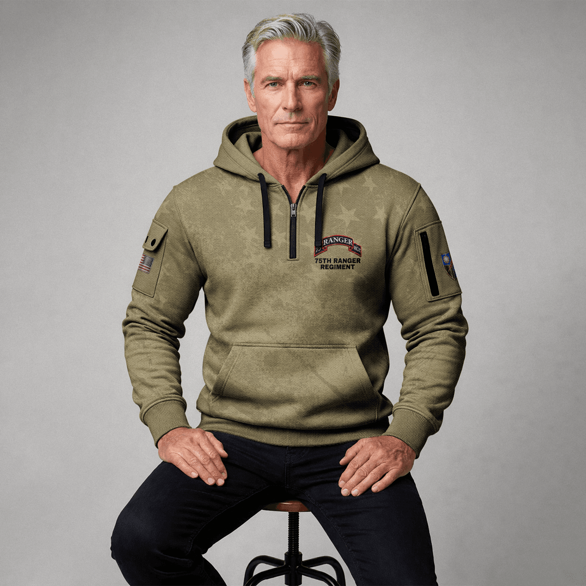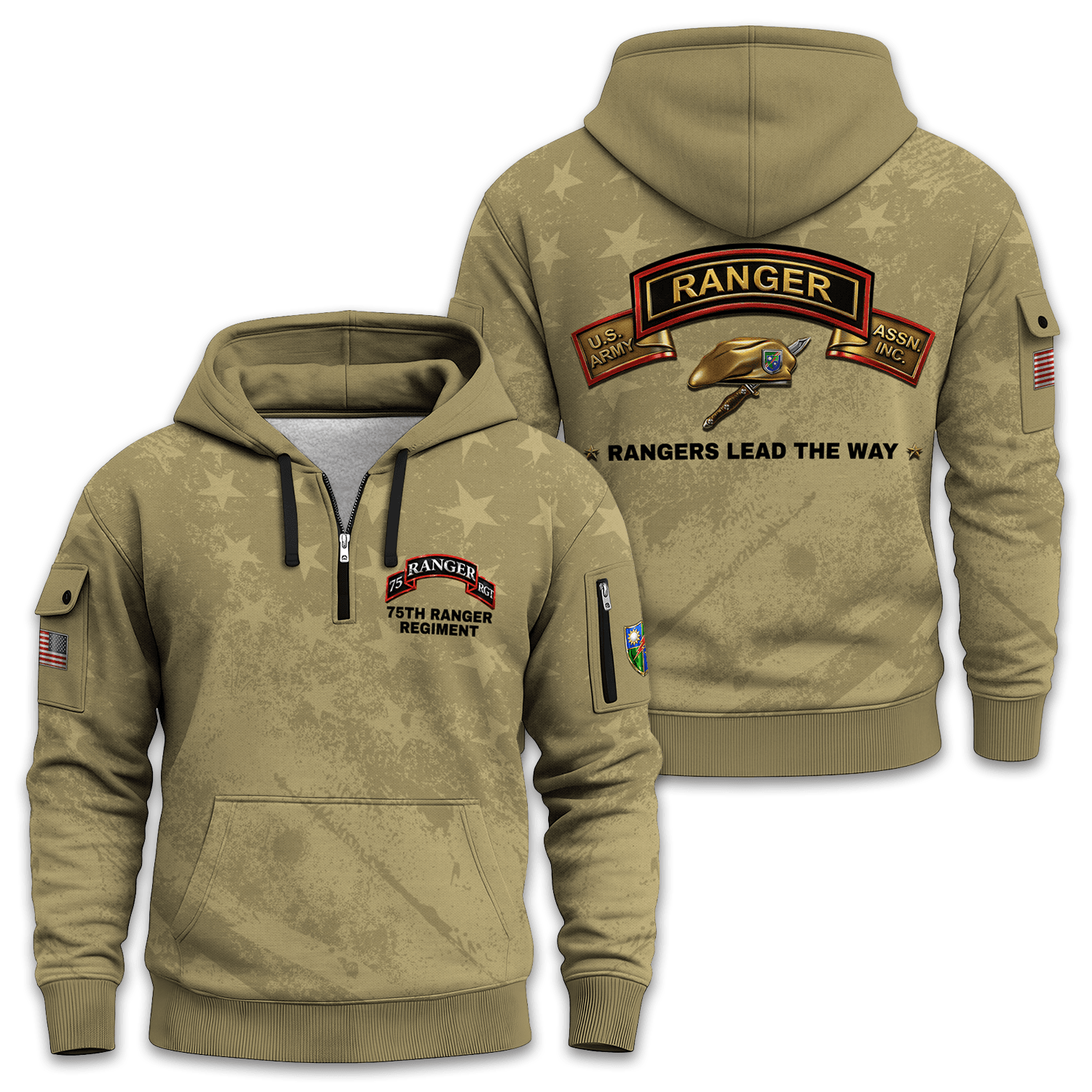 US Army 75th Ranger Regiment All-over Quarter Zip Hoodie