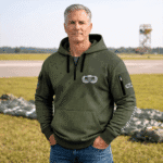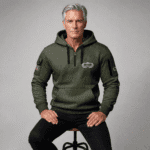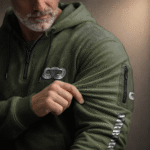 • Design: Quarter-zip collar with drawstring hood, long sleeves, dual side pockets, and two sleeve pockets