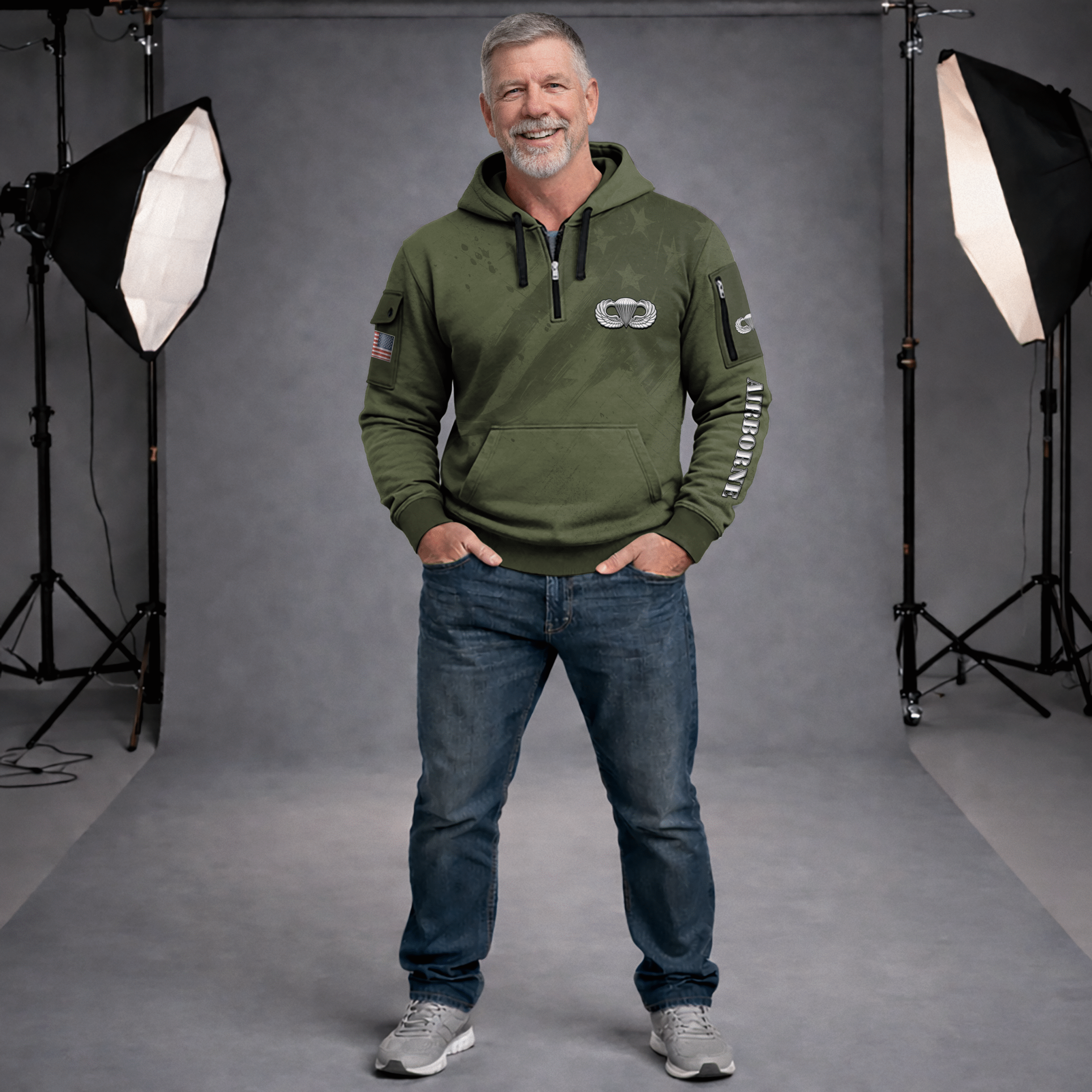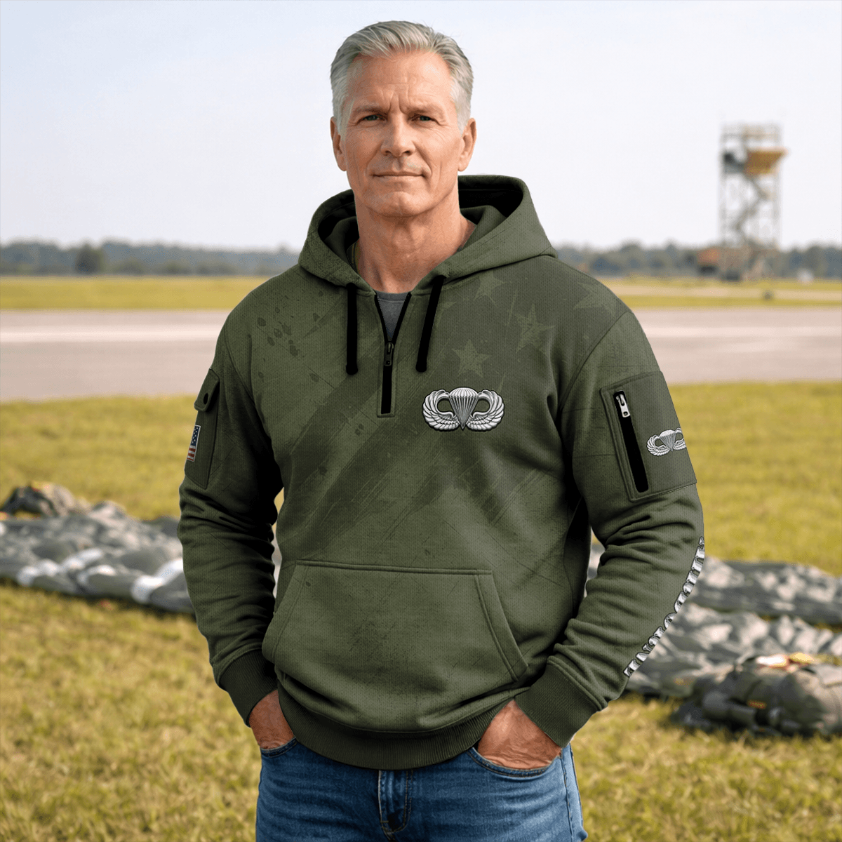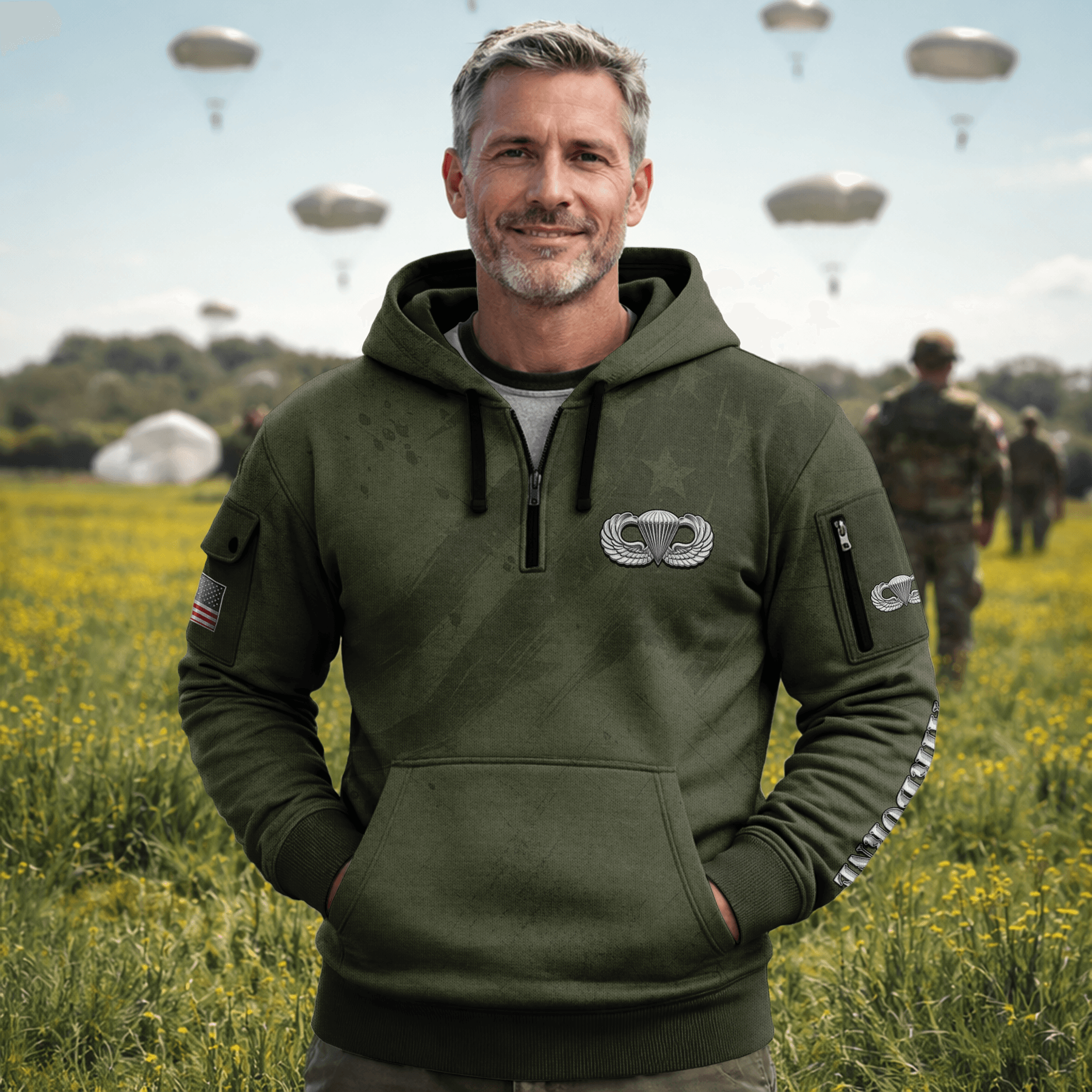 US ARMY AIRBORNE All-over Quarter Zip Hoodie