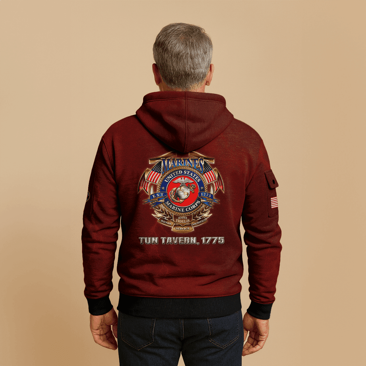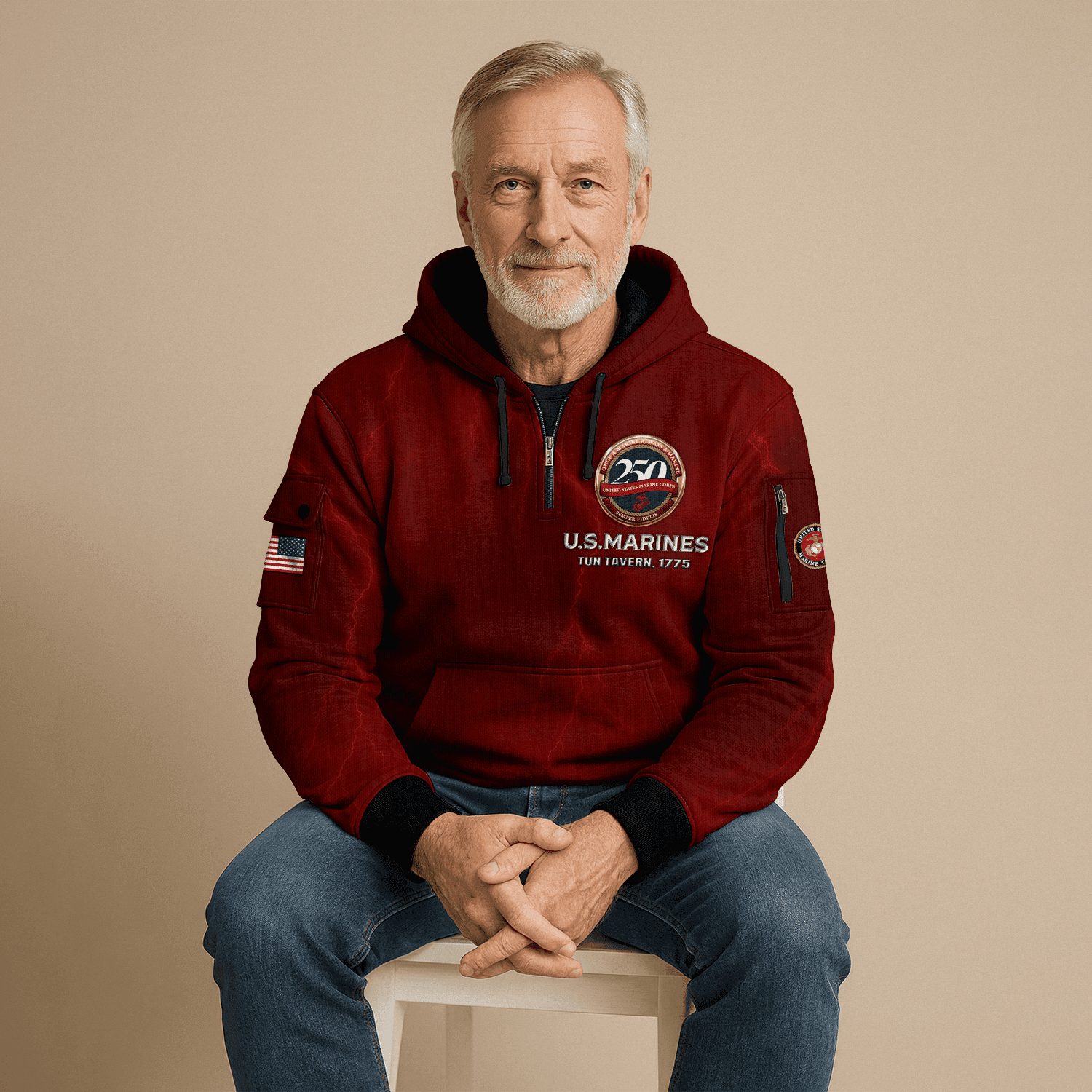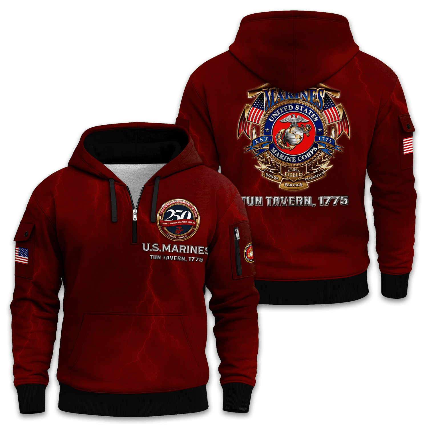 US MARINE 250th Years Of Service All-over Quarter Zip Hoodie