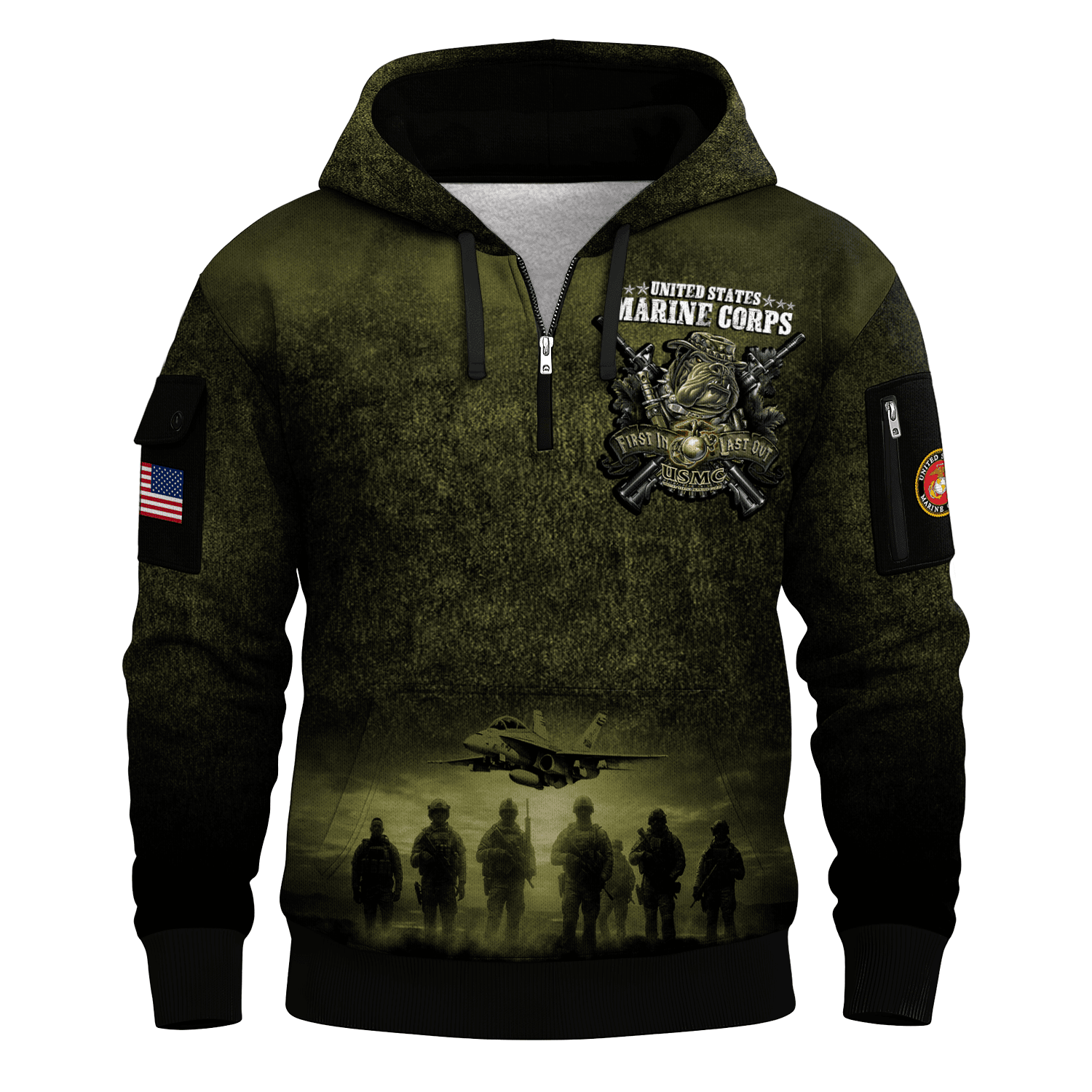 US MARINE 250th Years Of Service All-over Quater Zip Hoodie