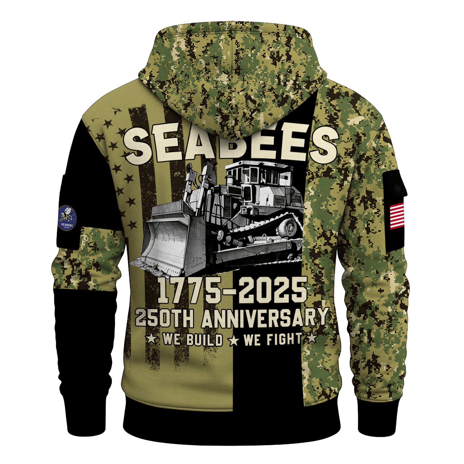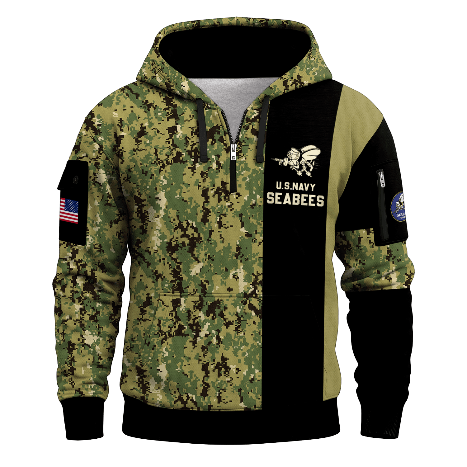 US Navy Seabees 250th Years All-over Quater Zip Hoodie of Service