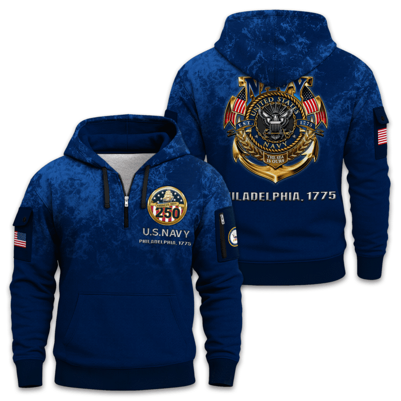 US NAVY 250th Years Of Service All-over Quarter Zip Hoodie