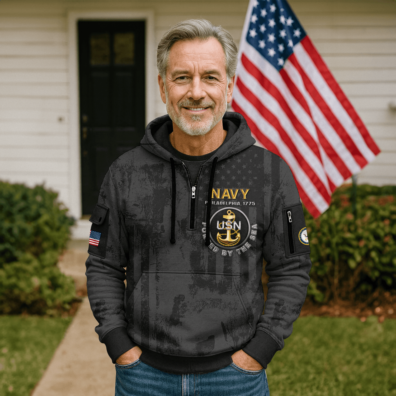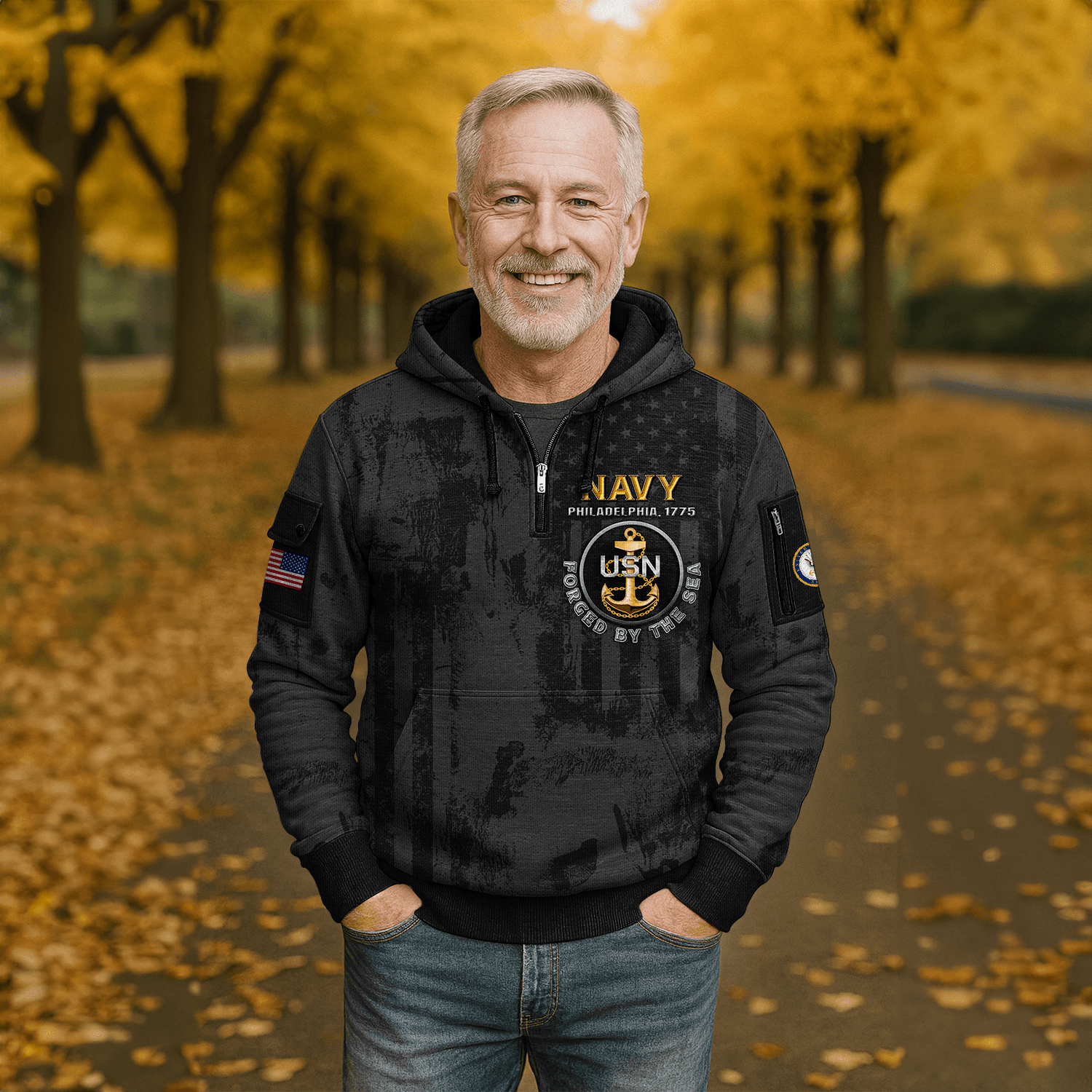 US NAVY 250th Years Of Service Quarter Zip Hoodie