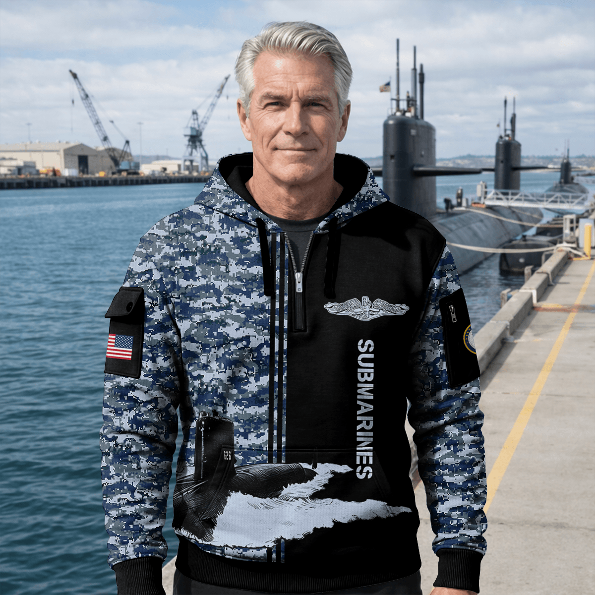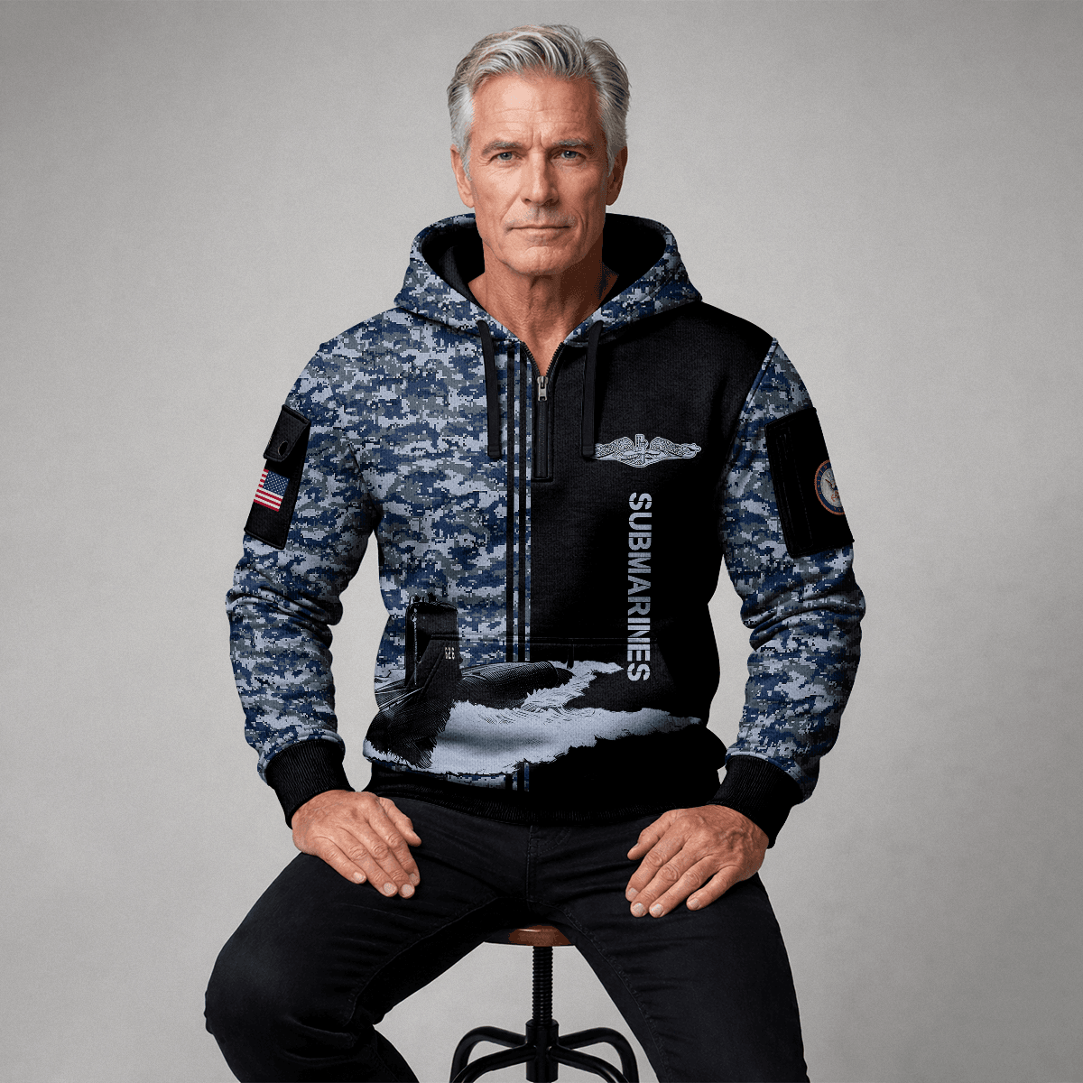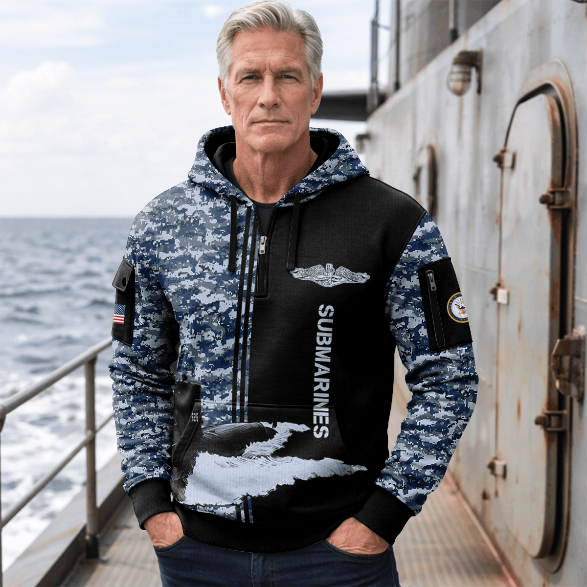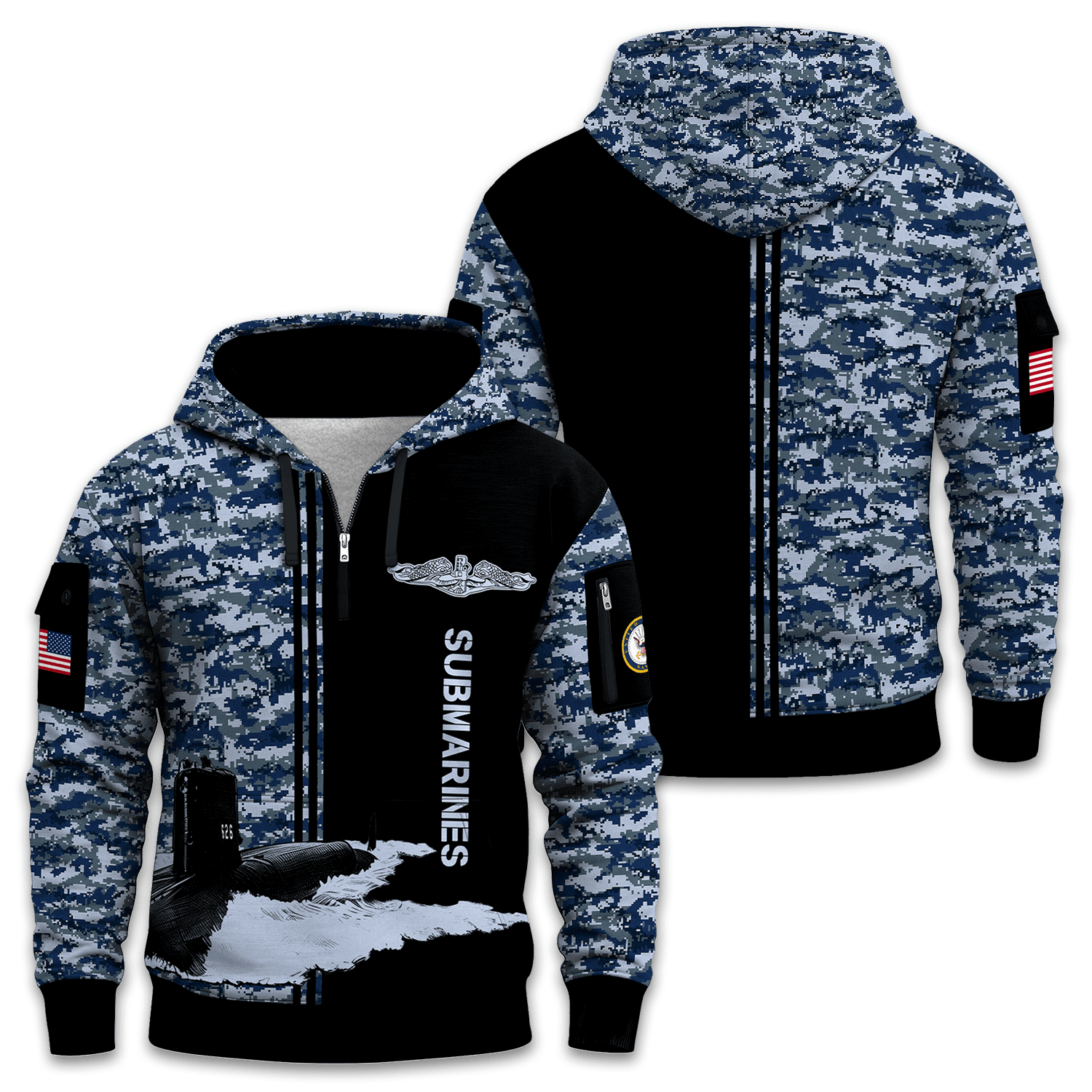 US Navy Submarine All-over Quarter Zip Hoodie